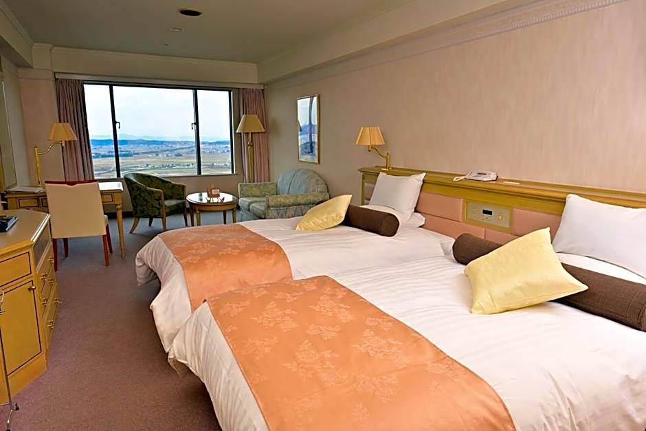 Dining is built in with the on-site restaurant ファムネット, a romantic space serving French cuisine. A free hot spring bath invites a soak, while the indoor pool and kids’ pool carry extra charges. Practical extras include free Wi‑Fi, a 24‑hour front desk, an elevator, and air conditioning.